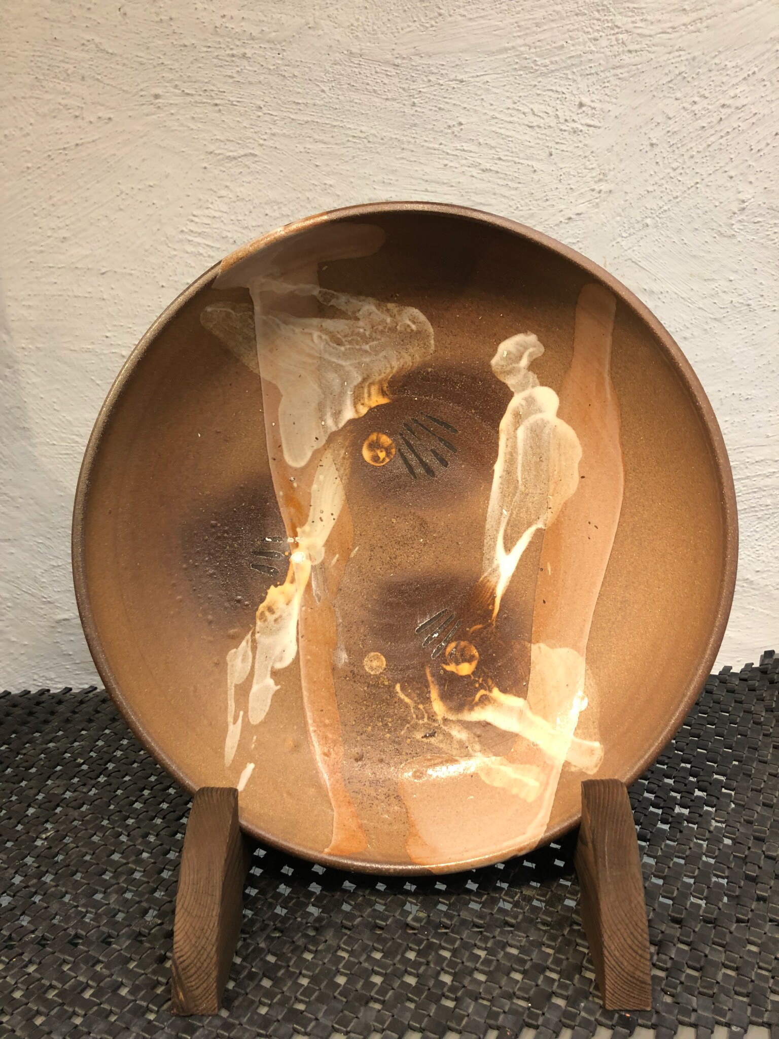 Fat i steingodsleire med askeglasur med avtrykk av kamskjell, brunne i vedfyrt omn ved 1280