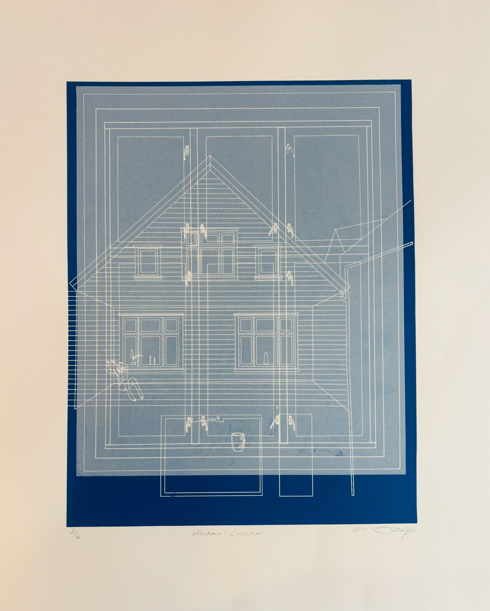 Tre vinduer var blitt tildekket for å øke veggplassen i galleriet. Disse ble “avdekket" gjennom malerier i naturlig størrelse. Maleriene viser vinduene og utsikten de ville hatt mot gaten utenfor. Vinduene er malt i målestokk 1:1. Formålet med arbeidet var å undersøke hvordan opprinnelige arkitektoniske trekk blir endret eller tildekket i løpet av en bygnings levetid, og i takt med dens skiftende funksjoner over tid. Verkets uttrykk og den blå fargen refererer til «blueprints», som tidligere ble brukt til fremstilling av arkitektoniske eller andre tekniske tegninger.