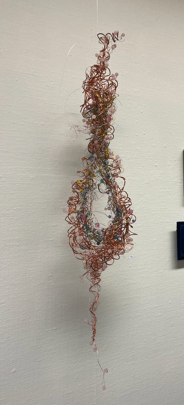 Teknikk: Metalltråd, kobbertråd, glassperler og rosenkvarts, kinetisk skulptur