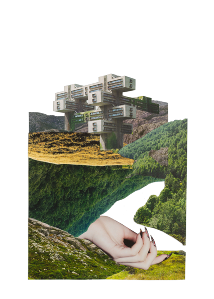 COLLAGE er et pågående arbeid som utvikles parallelt med andre prosjekter og prosesser i atelieret. Arbeidet startet i 2019 og tar utgangspunkt i et omfattende utklippsmateriale som over tid er bygget opp, med start i kunstmagasinet Frieze. Materialgrunnlaget er senere utvidet til å omfatte årbøker fra Den Norske Turistforening, destruerte bøker fra et bibliotekarkiv, samt aviser og ulike ukeblader.